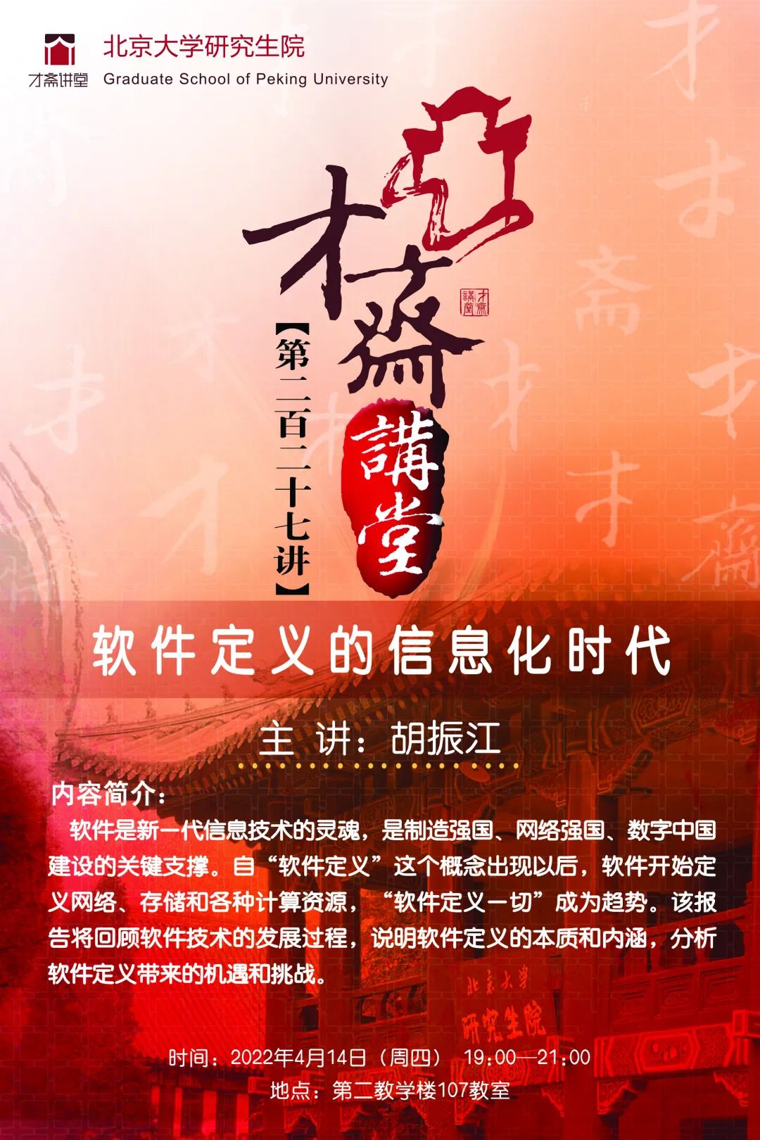 时间:2022年4月14日(周四),晚7:00—9:00