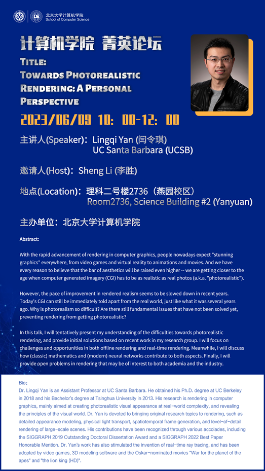 主讲人(Speaker):Lingqi Yan (闫令琪) at UC Santa Barbara (UCSB)