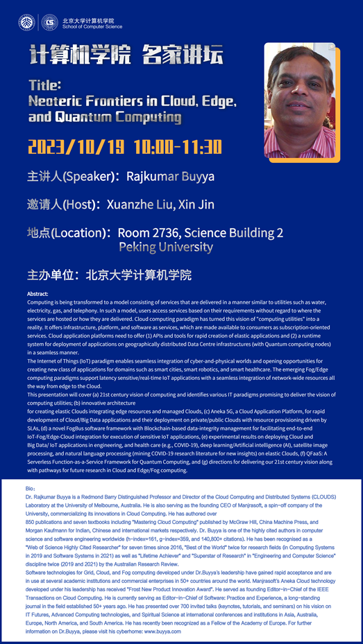 计算机学院系列讲座名家讲坛第7期——Neoteric Frontiers in Cloud, Edge, and Quantum Computing
