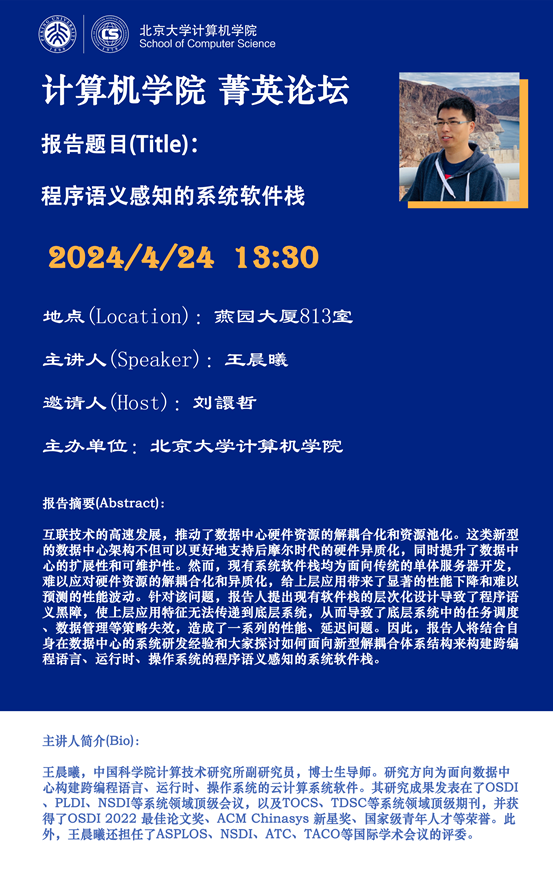 计算机学院系列讲座菁英论坛第27期——程序语义感知的系统软件栈