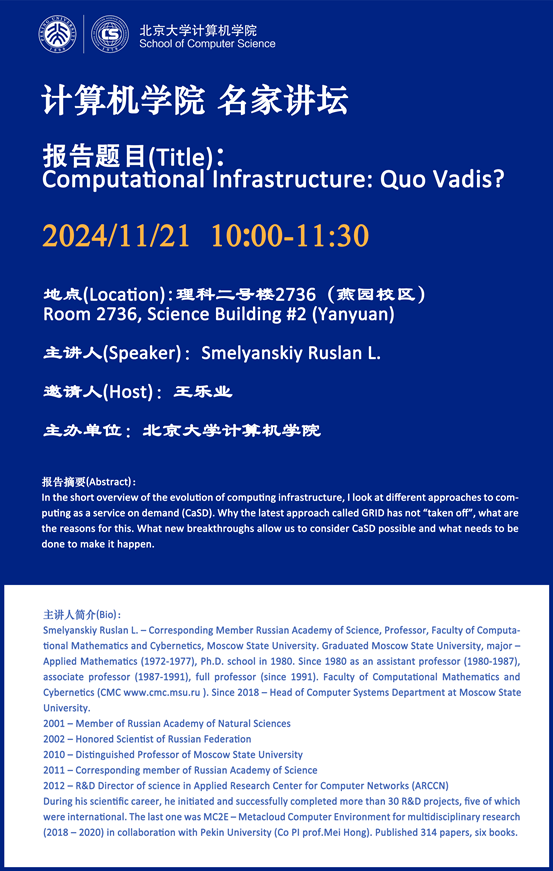 计算机学院系列讲座名家讲坛第21期——Computational Infrastructure: Quo Vadis?