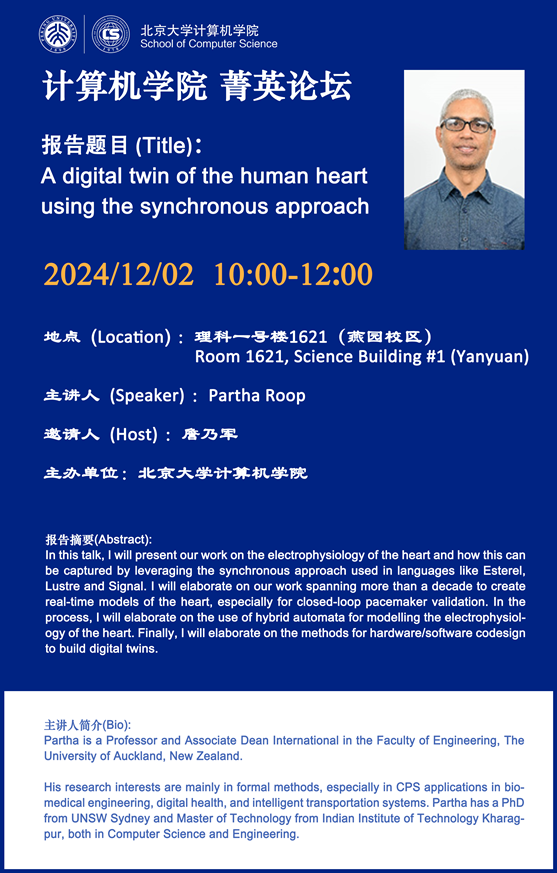 计算机学院系列讲座菁英论坛第38期——A digital twin of the human heart using the synchronous approach