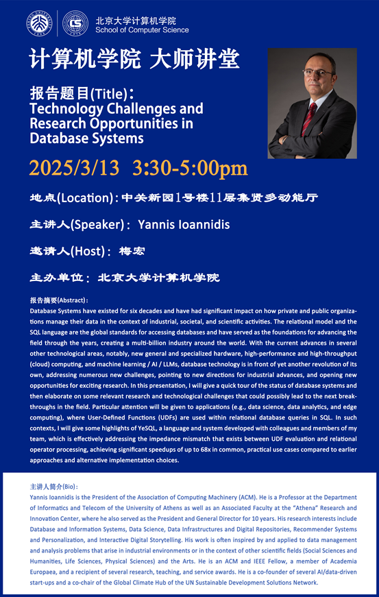 计算机学院系列讲座大师讲堂第8期——Technology Challenges and Research Opportunities in Database Systems