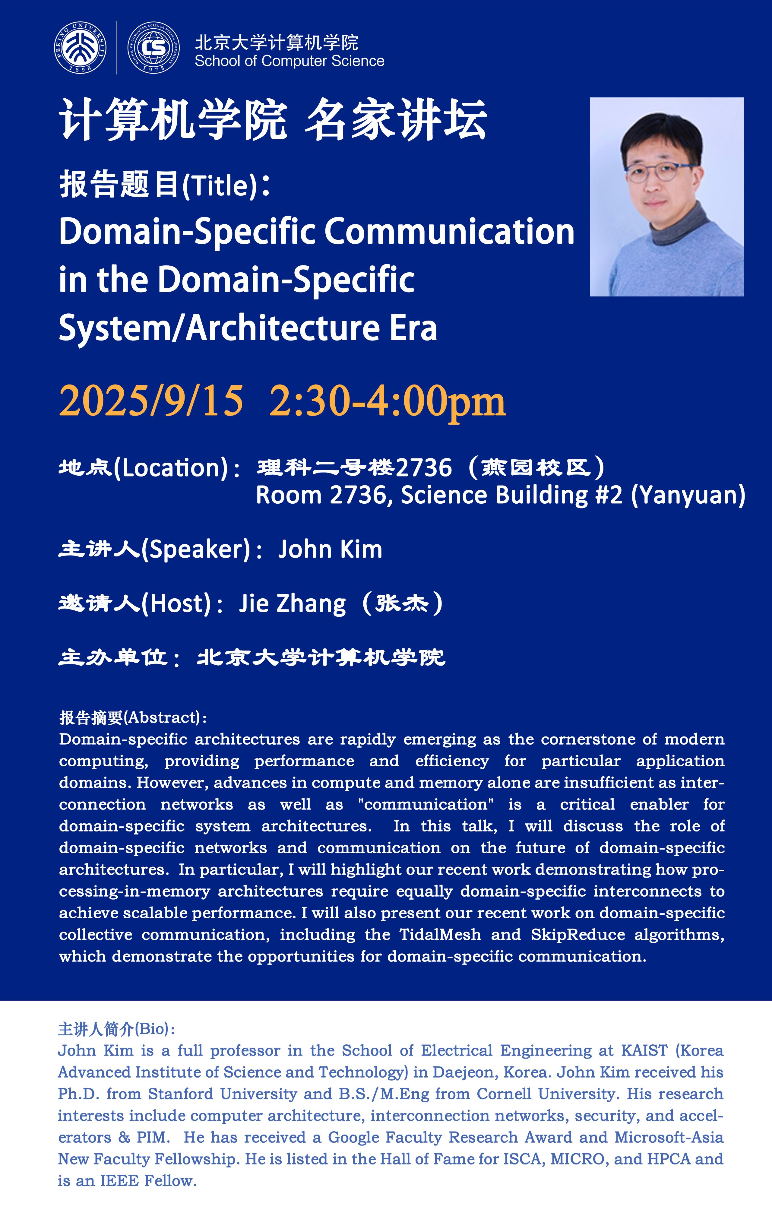 报告题目(Title):Domain-Specific Communication in the Domain-Specific System/Architecture Era