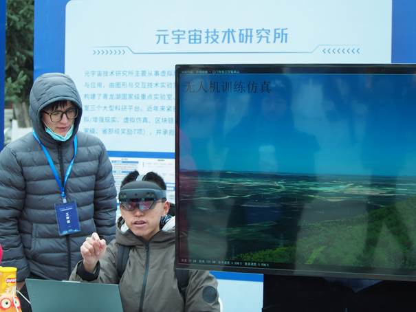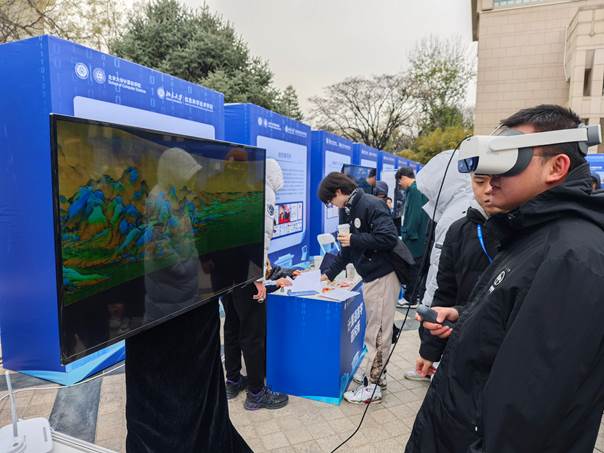 各研究所和中心的志愿者同学们在展位耐心地向围观的师生介绍前沿科技成果,通过生动的讲解和深入的交流,他们使复杂的科学概念变得易于理解和体验。大语言模型、VR和AR技术在这里不再是生涩难懂的科学术语,参观者们不仅获得了知识的启迪,还在各摊位上体验了丰富多样的模型展示、趣味游戏和有奖问答,使得学习既充实又富有乐趣。