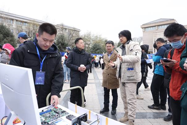 展板和互动展位前人潮涌动、热火朝天,现场主舞台文艺汇演与有奖问答也如火如荼地进行着。在丰富多彩的节目中,有《灯火中的中国》《星辰大海》等经典曲目,也有来自不同学院和社团的同学带来街舞、乐队串烧等多样的表演,一席视听盛宴吸引了众多师生驻足观看、鼓掌喝彩。节目中穿插的妙趣横生的计算机常识、听歌识曲等有奖问答环节,更是引得台下观众摩拳擦掌、跃跃欲试,将活动气氛推向高潮,充分展现了北大青年的青春风采。