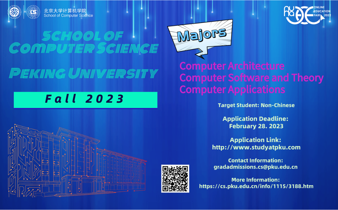 Since 2020, the School of Computer Science at Peking University has landed several programs for international students. Through the years, our international student body has been increasing rapidly, and we are proud of having students with strong education background from different parts of the world.