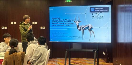 Iaroslav Ponomarenko, a Russian master's student (advisor: Professor Dong Hao), shared his research titled "Injecting Robot Affordance and Physically Grounded Information into Multimodal Large Language Models." He provided a detailed explanation of his methodology and progress, which captivated the audience. The session was followed by lively discussions and active questions from his peers.