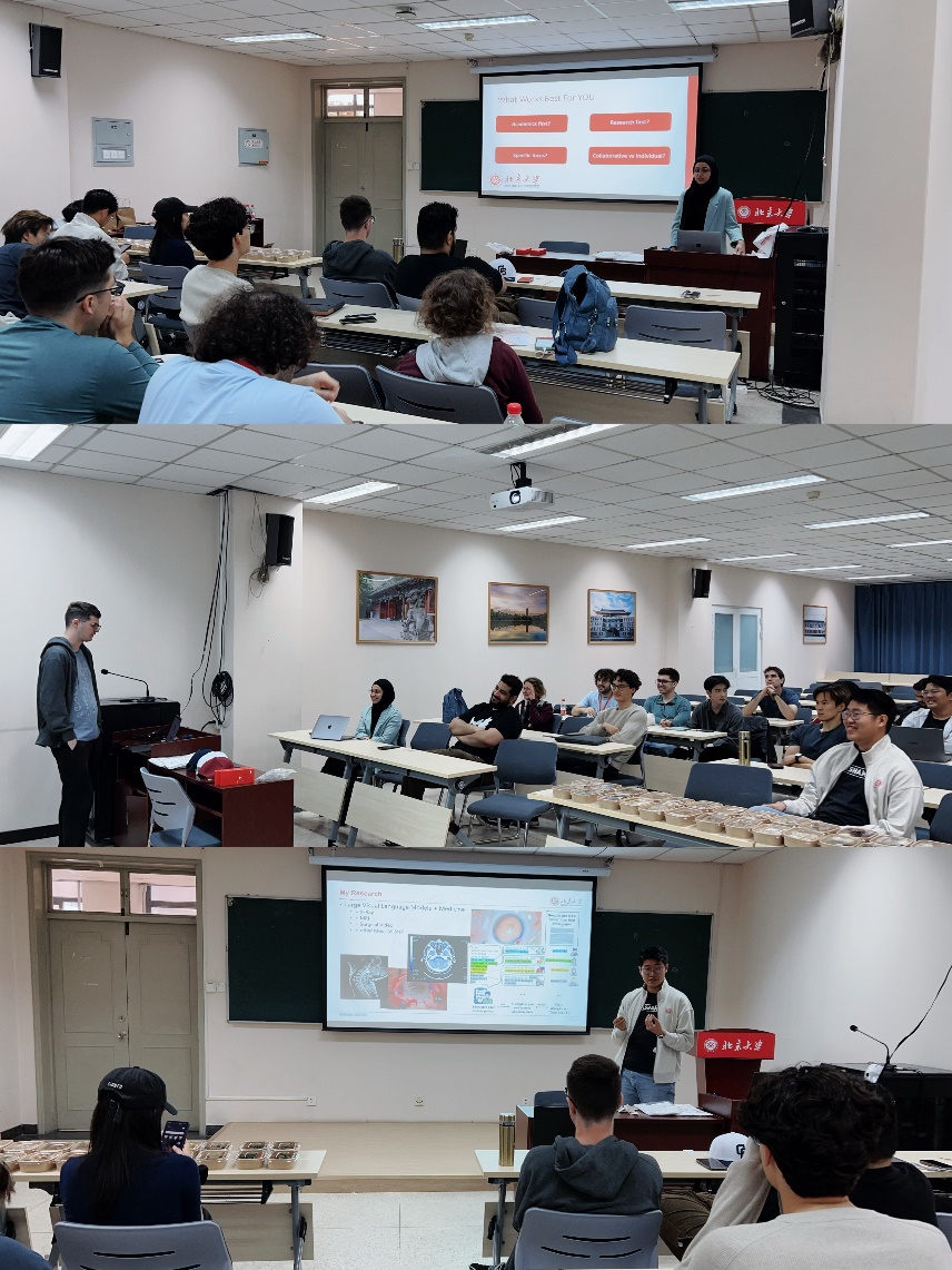 To further support the transition into academic and campus life, the School hosted a welcoming gathering on September 15. Three senior students from Russia, Bahrain, and Malaysia delivered engaging presentations, sharing their experiences with research, coursework, campus activities, personal interests, and practical tips for daily life in China. The session sparked lively interaction, with new students actively participating in discussions and gaining valuable insights.