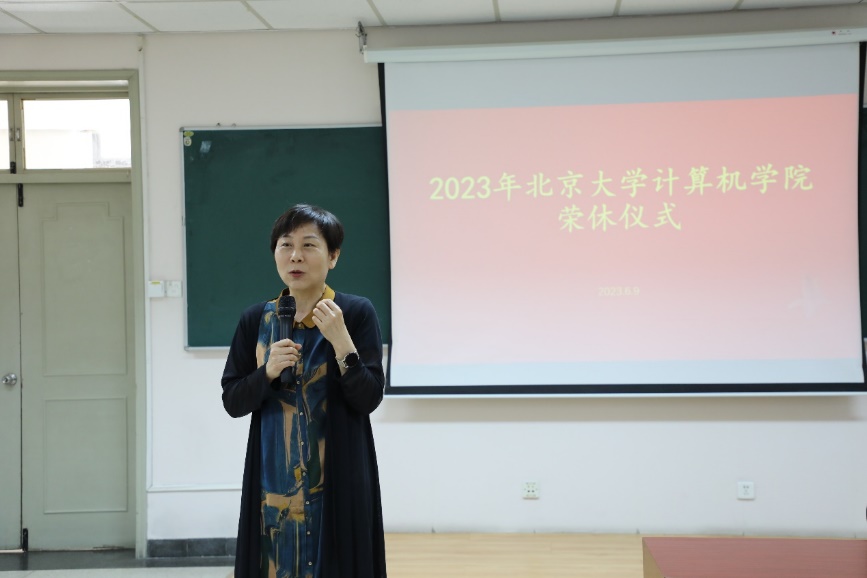 2023年6月9日,北京大学计算机学院在理科一号楼1126举办2023年荣休仪式。北京大学教务长办公室主任、教师教学发展中心主任孙华,计算机学院院长胡振江、党委书记熊校良、副院长崔斌、党委副书记马思伟及学院教职工、院友、同学代表共同见证了这一时刻、共忆过往,气氛温馨。荣休仪式由党委副书记马思伟主持。