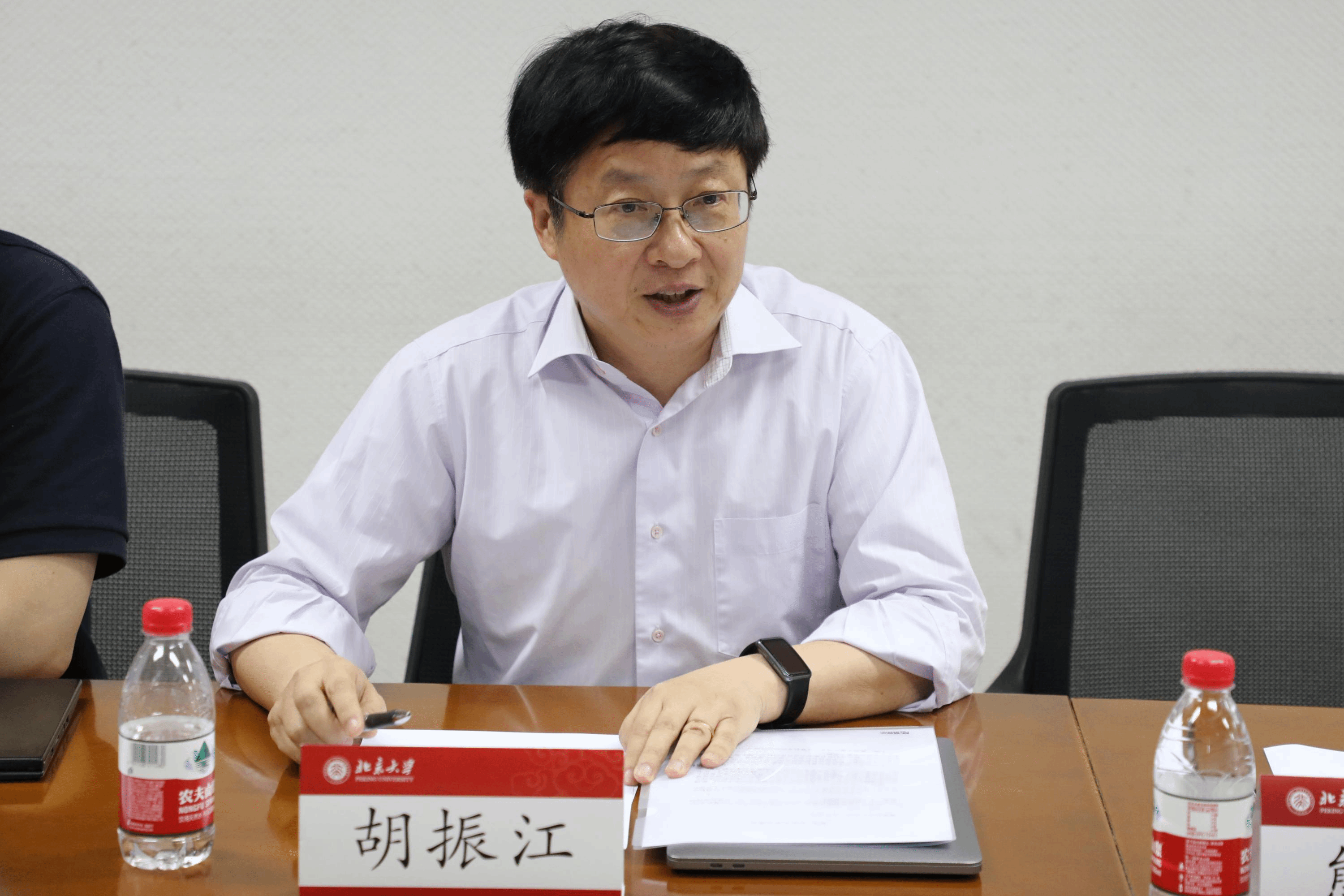 胡振江院长代表学院对中山大学计算机学院党政领导的来访表示热烈欢迎,并全面介绍了北京大学计算机学院的发展目标与工作成效,期望通过本次交流座谈,互相学习、互相借鉴,积极促进学科建设、人才培养、科研合作、国际化等方面工作的交流合作。