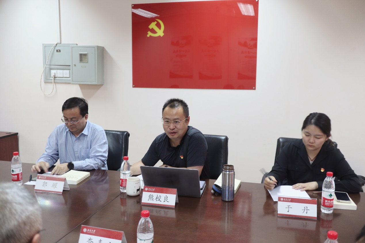 熊校良代表北大计算机学院对西电计科院的到访表示热烈欢迎,并就北大计算机学科的历史沿革、师资力量、学生培养、科研成果作详细介绍。他表示,北大计算机学院高度重视与西电计科院的交流合作,希望能够进一步加强双方在人才培养、科研创新、党建工作等方面的合作,共同进步,共同发展。