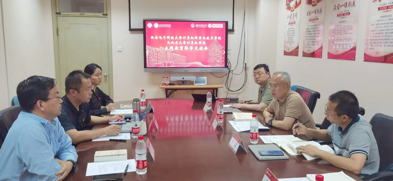 5月18日下午,北京大学计算机学院与西安电子科技大学计算机科学与技术学院共同开展主题教育联学交流会。西电计科院党委书记李青山,副院长万波、李瑞,党建与学生工作办公室主任同榛一行来访北大计算机学院。计算机学院党委书记熊校良,副院长郭耀,软件所副所长、科研部副部长刘譞哲,团委书记于丹,以及6名本科毕业于西电计科院,目前就读于北大计算机学院、软件与微电子学院的研究生代表参与本次交流会。
