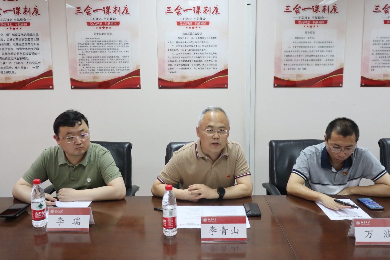 李青山从西电计科院的发展历程、专业设置、学科评级、科研成果等角度做介绍。他表示,近年来,优秀的西电计科院毕业生来到北大计算机学院学习,两院老师在学术科研上联系愈发紧密。期待双方在日后进一步开展党建和业务融合的主题教育联学活动,共同提高政治素质和专业水平。