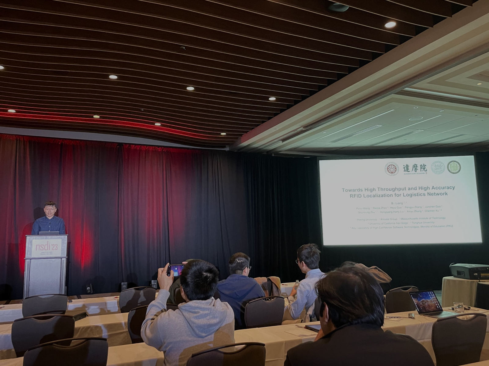 该工作以《RF-Chord: Towards Deployable RFID Localization System for Logistic Networks》为题,发表于今年的 NSDI 中的 Physical Layer 会场,由文章第一作者北京大学计算机学院的22级博士生梁博进行宣讲,合作者包括王璞瑞(MIT),赵人杰(UCSD),郭和毓,张鹏宇(阿里巴巴),郭俊辰(阿里巴巴),祝顺民(阿里巴巴),刘洪强(阿里巴巴),张新宇(UCSD),许辰人副教授(通讯作者)。