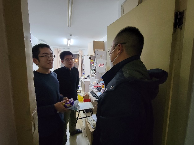 11月27日晚,胡振江、魏朋走进新校区学生宿舍,熊校良,院长助理、综合办公室主任刘旭东,带领部分学生骨干走访了勺园和畅春新园的学生宿舍,看望在住的计算机学院同学。走访期间,老师们深入了解同学们在疫情期间的学习生活情况,针对近期的一些政策进行了讲解,耐心解答同学们心中的困惑和疑虑,并为同学们发放了食品和口罩等慰问物资,引导学院同学在特殊时期做好个人防护,积极调整心态,凝心聚力,共克时艰。李航、廖万平、王苏颖等一同参加了本次新校区走访活动。
