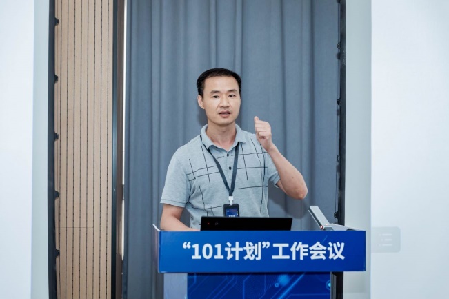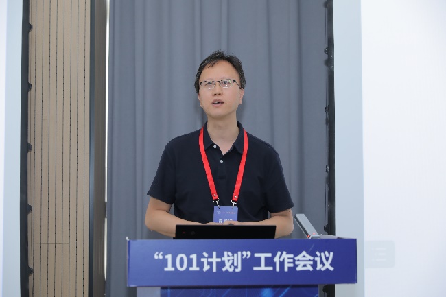 课程建设组负责人、北京大学计算机学院副院长郭耀教授总结了2022年上半年课程建设进展,并介绍了下一阶段课程建设组的工作计划。郭耀教授强调“101计划”的总体目标是建好核心课程体系,促进教学效果提升。目前,课程建设组已经针对国内外高校课程建设进行了调研,规划出撰写教材和搭建实践平台的流程。下一步,课程建设组将抓紧推进知识点教案和教材撰写,搭建课程体系展示平台,推动虚拟教研室开展交流活动,不断提高“101计划”课程建设质量。