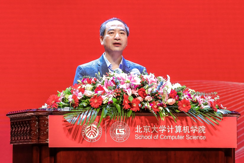 龚旗煌代表学校向计算机学院的成立表示祝贺。他指出,北京大学成立计算机学院,是贯彻落实习近平总书记重要讲话精神、服务国家发展的重要部署,也是深化多学科交叉融合、加快推动我国计算机学科发展的重大举措。龚旗煌代表学校对办好计算机学院提出三点要求:一要围绕立德树人根本任务,不断深化人才培养;二要聚焦计算机科学的前沿领域,提升原始创新能力;三要打造世界一流人才高地,发挥引领示范作用。他希望计算机学院建设好计算机学科的一流平台,凝聚起一批世界级的计算机科学家,与各兄弟高校、科研院所、高新企业一起发愤图强、奋力前行,共同开展科学研究和成果转化工作,构建新型创新共同体,为提升我国信息产业自主创新能力贡献北大力量。