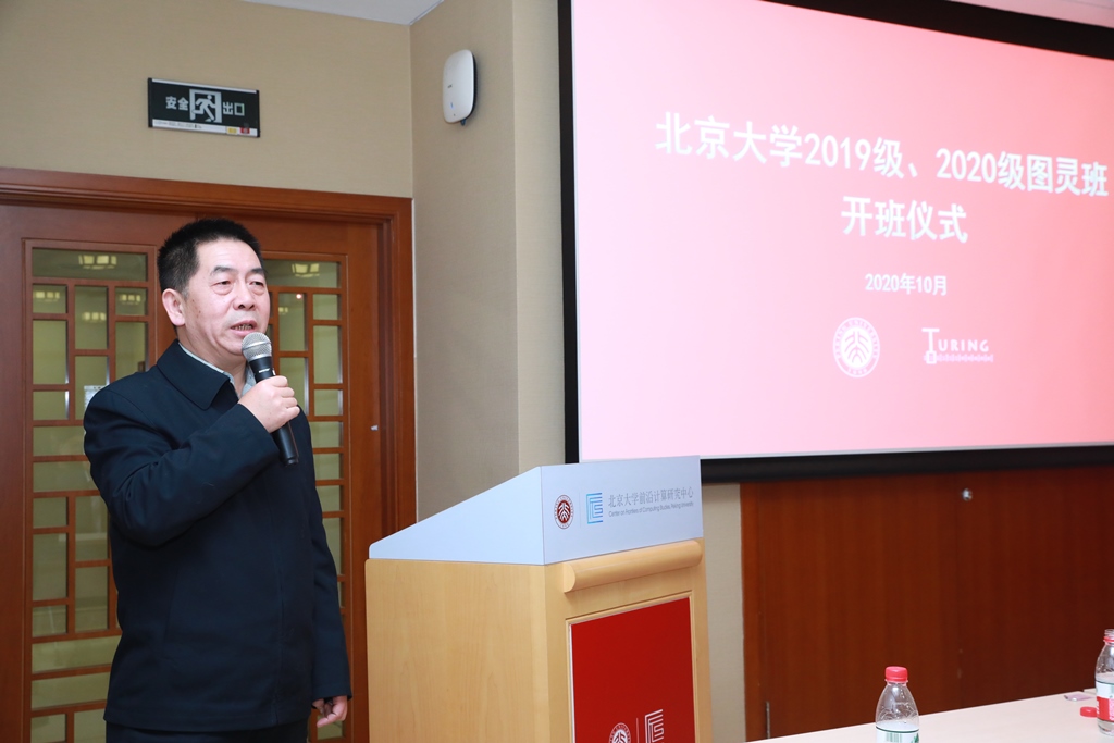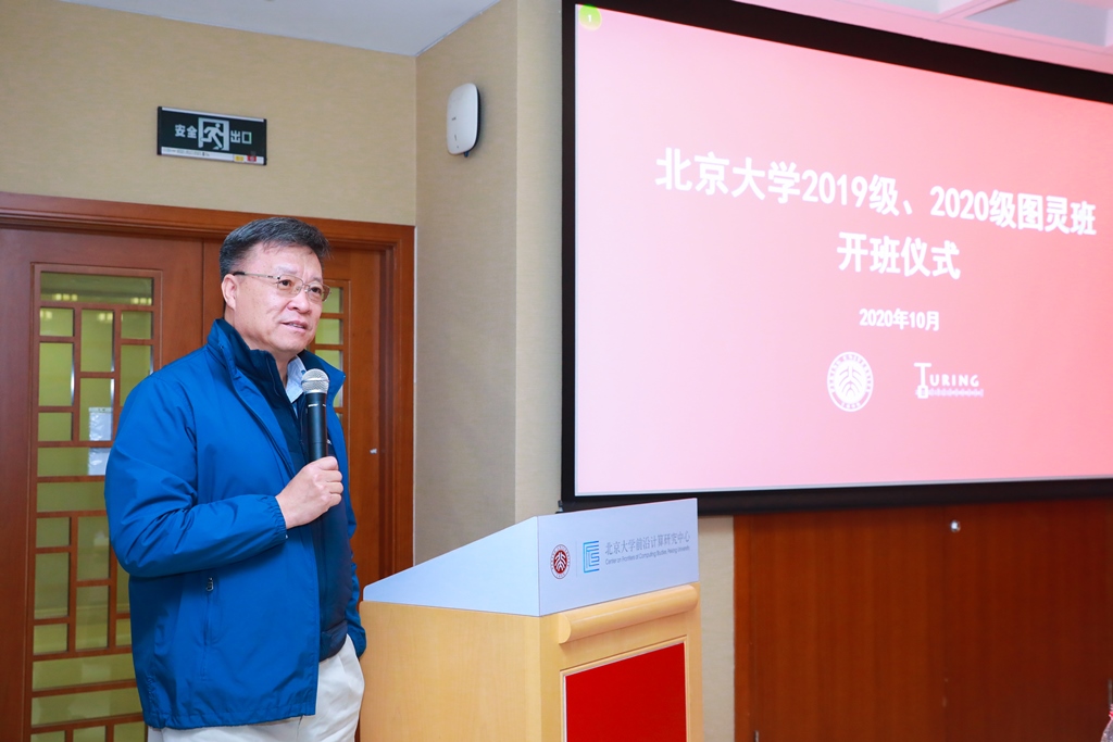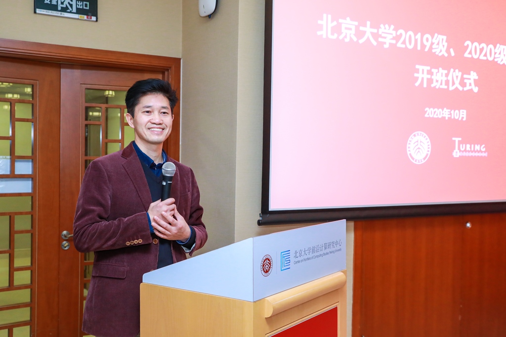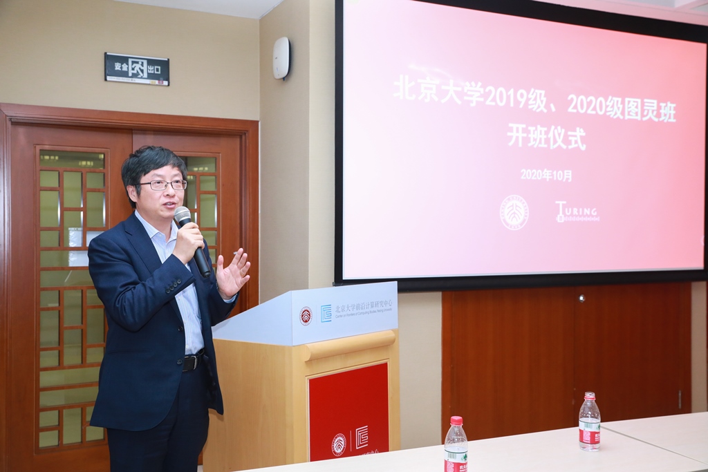 2020年10月27日,北京大学2019级、2020级图灵班开班仪式在静园五院举行。北京大学教务部副部长刘建波教授,信息科学技术学院院长高文院士,副院长兼计算机科学技术系主任胡振江教授、副系主任郭耀教授,图灵班班主任和部分任课教师以及图灵班同学出席了活动。开班仪式由前沿计算研究中心执行主任陈宝权教授主持。