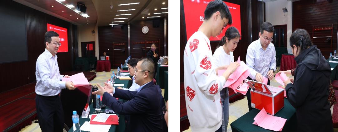 会议首先进行常务理事选举,选举环节由马思伟主持,郭耀全程监票,参会的理事会成员进行投票。按照公正、透明的原则,孙凝晖、初育国、张铭、胡振江、顾坚、崔斌、雷鸣、熊校良、魏朋九位理事会成员当选为计算机学院分会第一届理事会常务理事。