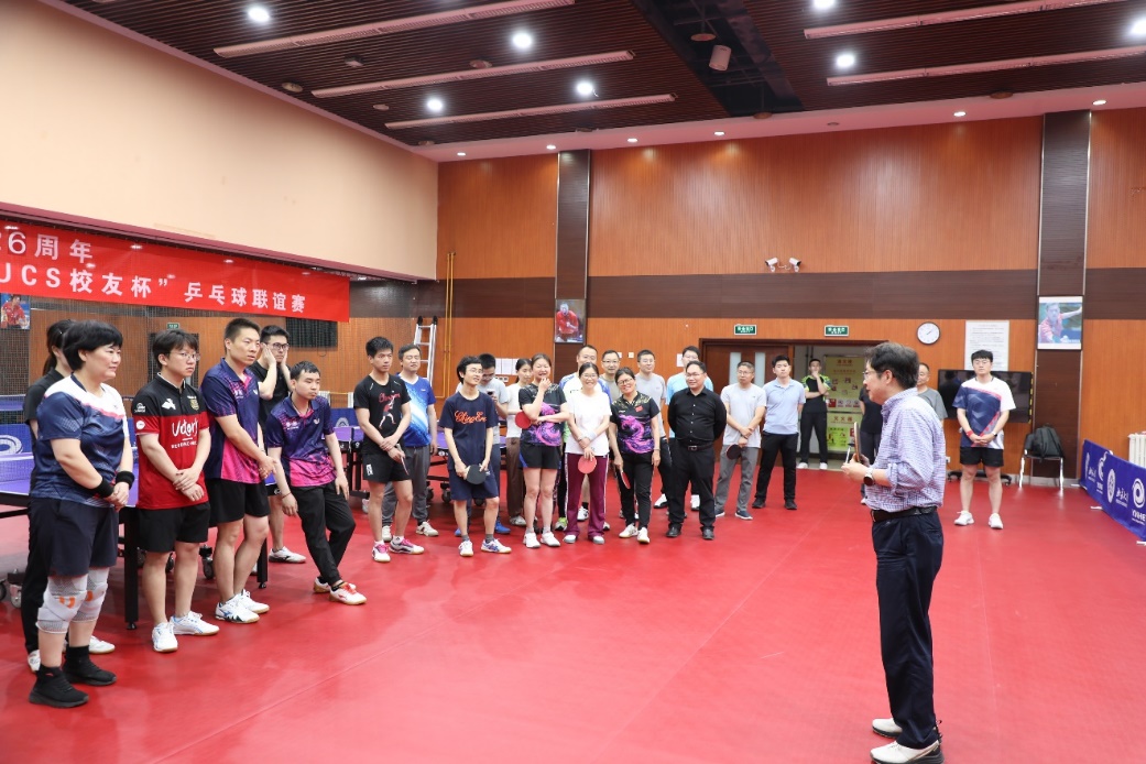 比赛开始前,胡振江院长、熊校良书记和魏朋副书记欢迎前来参赛的校友,鼓励他们赛出水平、通过比赛增进友谊,并向组委会的辛勤付出表示感谢。赛事主要组织者张铭教授代表运动员感谢计算机学院对为本次比赛提供了高品质球馆、丰厚奖品和饮用水等方面的保障,PKUCS校友乒乓球赛作为校友分会筹备过程中的重要活动对北大校友会计算机学院校友分会的成立也发挥了积极的作用。在球友们的欢呼声中,胡振江院长和周明辉副院长为本次校友赛开球,比赛拉开了序幕。