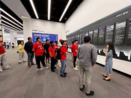 第二天上午,留学生们参访了华为技术有限公司位于坂田的总部。华为公司以其强大的研发投入和“数字化、智能化、低碳化”的发展方向著称。在智慧园区IOC和数字化转型展厅,留学生们参观了智能化园区、全无线智能物联工厂、低碳园区等前沿展示。华为技术专家的详细讲解加深了留学生们对华为的了解,展示了其作为全球领先的信息与通信技术解决方案供应商的实力。