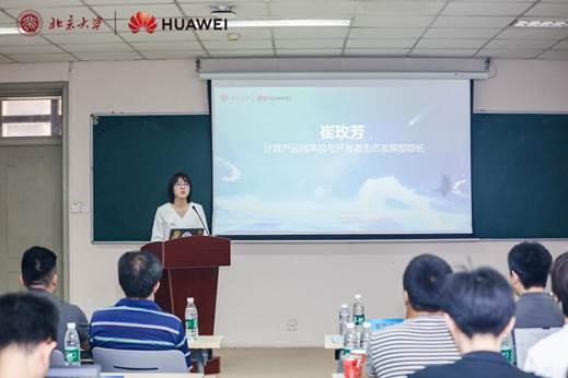 北京大学计算机学院副院长崔斌教授和华为计算产品线高校与开发者生态发展部部长崔玫芳分别进行了发言,介绍本次特训营举办的目的,阐述华为生态建设布局,并勉励同学们积极学习探索、敢于创新。
