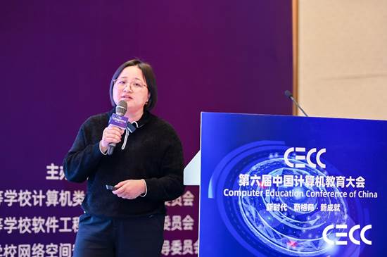 厦门大学信息学院副教授王晓黎介绍了厦门大学计算机学科课程建设的探索与实践。厦门大学不断推进计算机学科建设,在师资团队建设、课程建设等方面取得多项成果,在计算机系统课程建设方面,以面向本科生的智能计算系统能力培养为基本思路,开展“大班教学,小班实验”的教学模式,探索建设特色计算机学科课程,未来将加强顶层设计,有组织进行课程和教材建设。