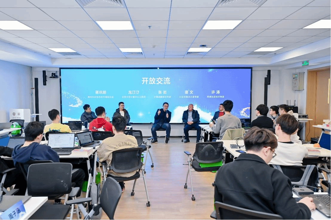 活动最后,是与技术专家面对面开放讨论环节,就鲲鹏昇腾设备使用、算子开发与适配、硬件性能与生态建设等诸多领域,学生们提出的问题得到了专家们细致且富有前瞻性的解答,不仅激发了大家探索新技术的热情,也为未来的研究方向提供了新的思路。