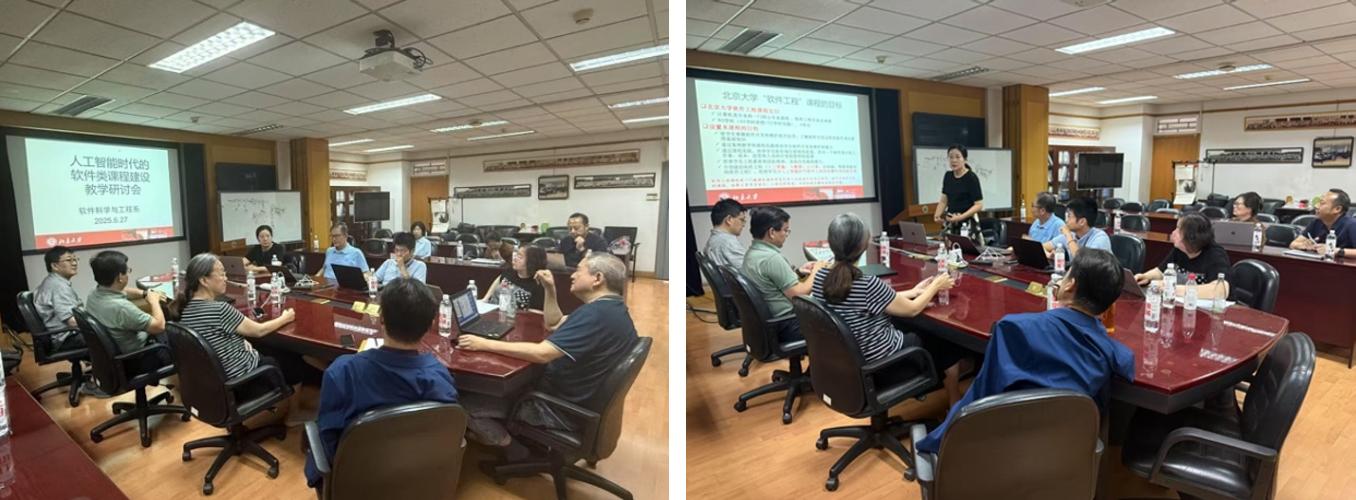 在2025年6月27日,软件科学与工程系举办了一场“人工智能时代的软件类课程建设“教学研讨会,旨在探讨在人工智能(AI)技术飞速发展的背景下,软件类相关课程的未来发展方向。计算机学院十几位老师共聚一堂,探讨人工智能时代各类课程的教学改革。其中多位教师在会上分享了各自的思考与实践,就如何将AI技术融入教学、如何调整课程体系以适应新时代需求等议题展开了热烈讨论。软件科学与工程系副主任孙艳春副教授主持了本次教学研讨会。