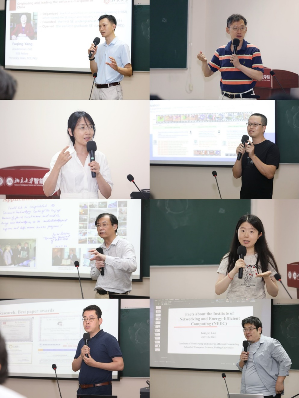 在研究所介绍环节上,学院8个所的教师代表分别介绍了各所研究方向与科研成果,覆盖软件、硬件、人工智能、计算机视觉、网络、元宇宙、大数据、理论等计算机各个领域,为学生们后续的学习与探索提供了丰富资源与方向指引。