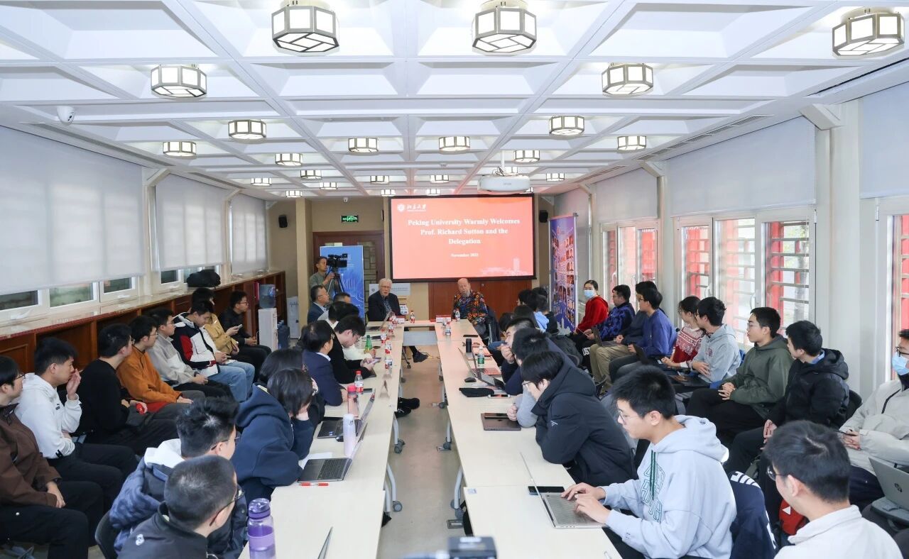 2025年11月26日,2024年度图灵奖得主、国际著名强化学习专家、阿尔伯塔大学 Richard Sutton 教授受邀到访北京大学,与北大图灵班师生就“人工智能的未来:经验纪元与设计时代”(The Future of AI: The Era of Experience and the Age of Design)主题展开座谈。活动吸引了各界专家、学者及学生踊跃参与,现场讨论气氛热烈。活动由图灵班科研导师、计算机学院长聘副教授卢宗青主持。