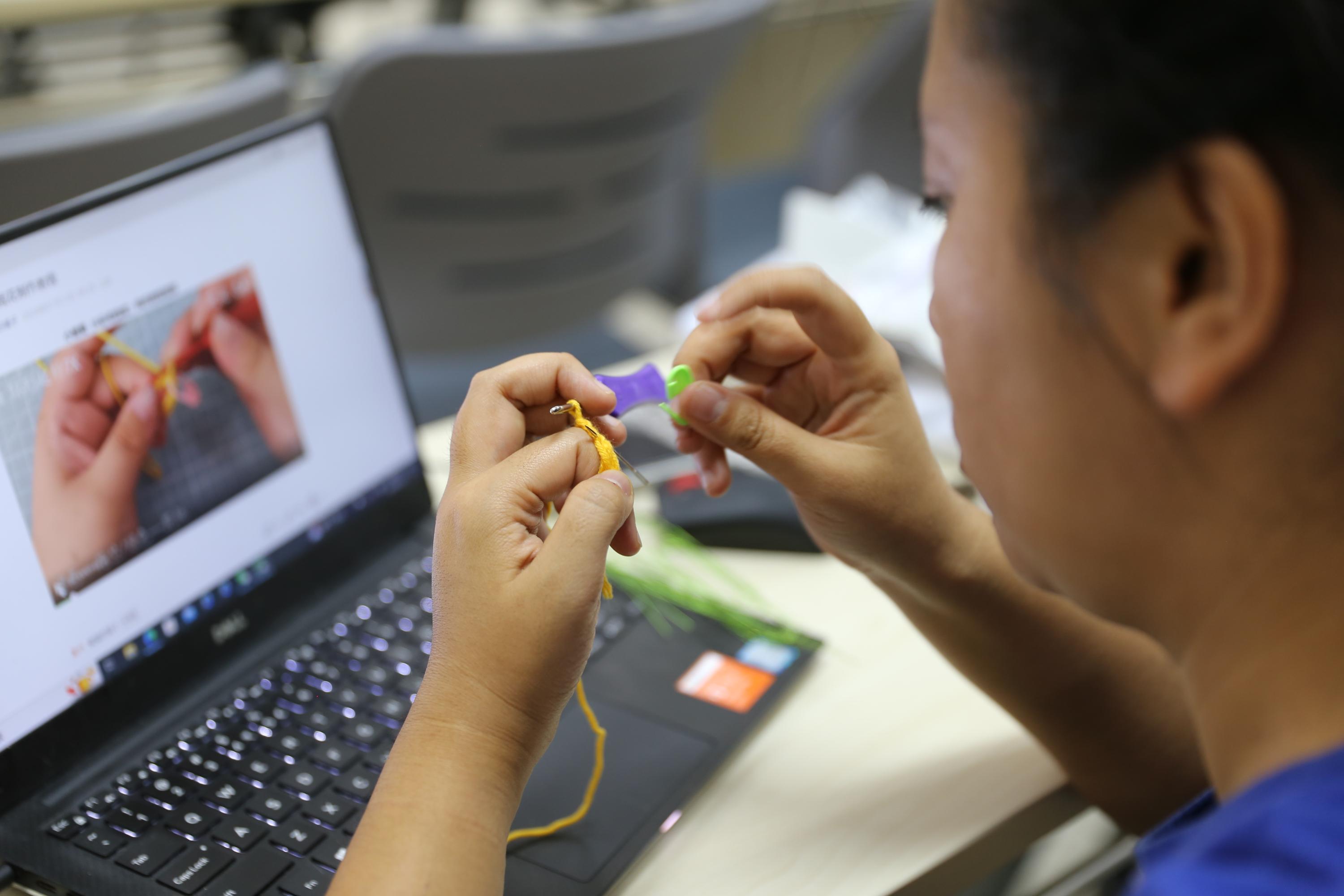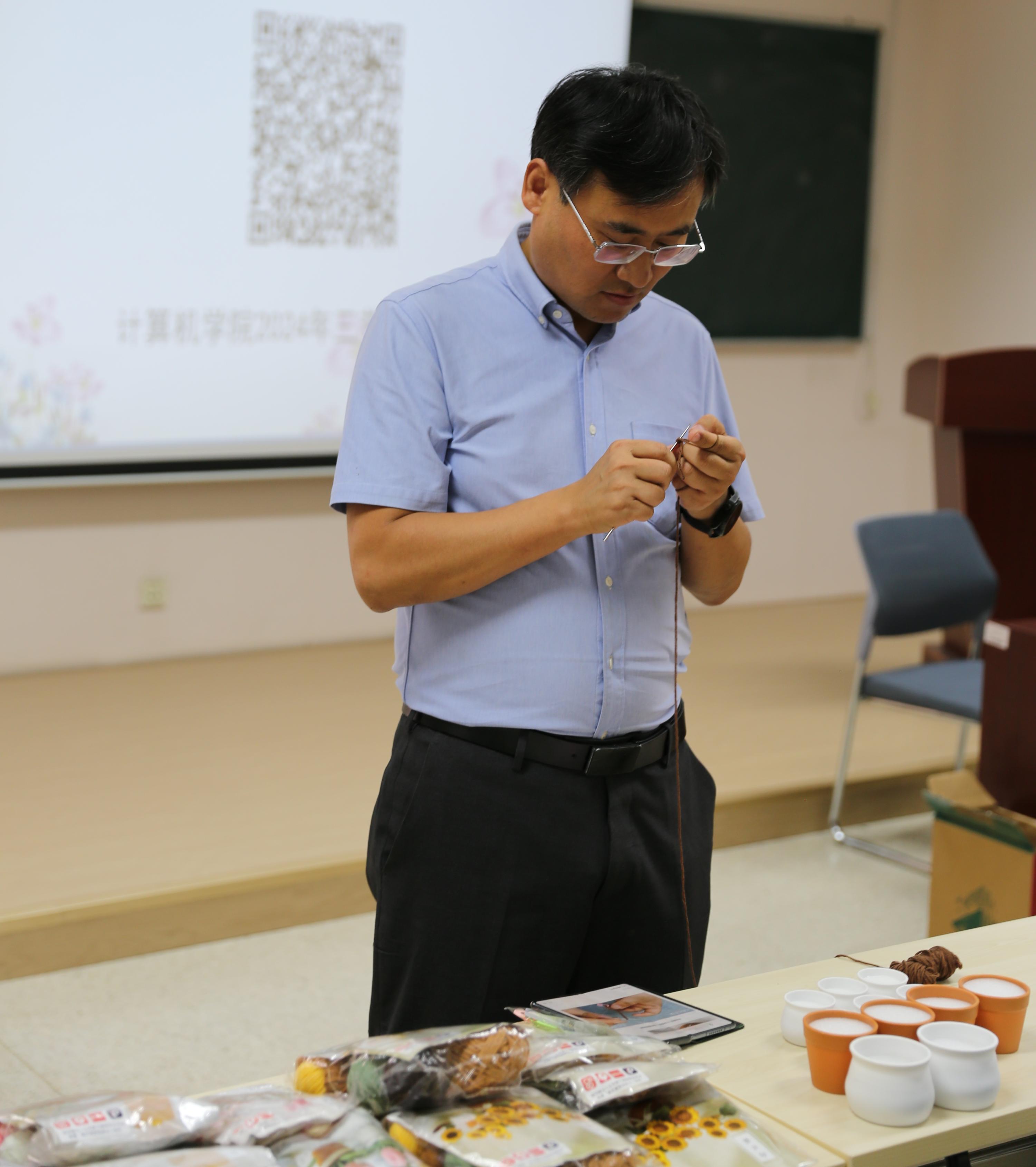 工会主席马思伟老师率先垂范,凭借其织毛衣的功底,迅速掌握钩织技巧,引领风尚;宣传委员吴双老师则展现出非凡的耐心与毅力,对视频教程的起针部分反复揣摩,终得要领,开启了她的创作之旅。其他老师们亦不甘落后,一针一线间,倾注了对教育事业的热爱与对师长的感激之情。