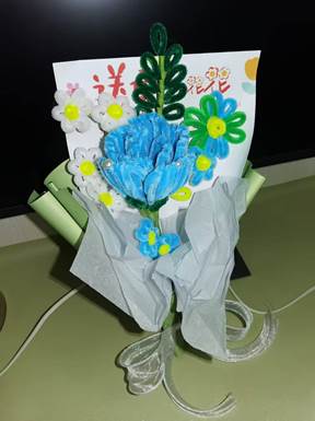 由于时间有限,大部分老师将花束材料包回家制作。在家中,老师们化身“花艺师”,在方寸之间尽情施展创意。她们或细心观察,用灵巧的双手将扭扭棒扭制成形态各异的花瓣;或大胆配色,将五彩斑斓的扭扭棒组合成绚丽多彩的花朵。一朵朵娇艳的玫瑰、一支支清雅的百合、一束束充满生机的向日葵……在老师们的巧手下,扭扭棒仿佛被赋予了生命,绽放出别样的美丽。