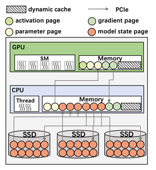 近年来,大规模预训练模型取得了前所未有的成就。腾讯公司的多款产品和服务,如微信、QQ和腾讯广告,已经广泛应用这些先进的预训练模型以提升用户体验和服务质量。文章Angel-PTM: A Scalable and Economical Large-scale Pre-training System in Tencent提出了Angel-PTM,一个专为大模型预训练而精心构建的工业级深度学习系统,可以利用GPU服务器中的多层存储高效地训练超大规模的模型。Angel-PTM 的关键设计在于其基于Page抽象的细粒度内存管理和一个统一视角的训练调度器,该调度器高效地协调了计算、CPU与GPU之间的数据传输以及GPU间的通信。此外,Angel-PTM通过使用SSD存储来支持超大规模模型的训练,并提出了无锁更新机制以缓解SSD I/O带宽瓶颈的问题。实验结果表明,相比现有系统, Angel-PTM在相同GPU资源下支持更大的模型训练(提升114.8%),且训练吞吐提升了88.9%。此外,我们还对AngelPTM在千卡A100 GPUs训练GPT3-175B和T5-MoE-1.2T模型的性能进行了测试,从而进一步验证了其出色的的可扩展性。