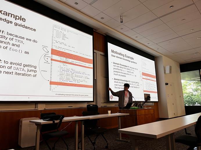 论文第一作者计算机学院 2019 级博士生贺宁宇在 ISSTA 会议作口头报告