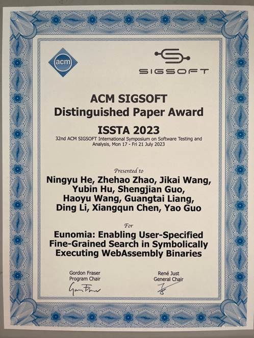 郭耀教授团队荣获2023年ACM国际软件测试与分析会议(ISSTA 2023)杰出论文奖